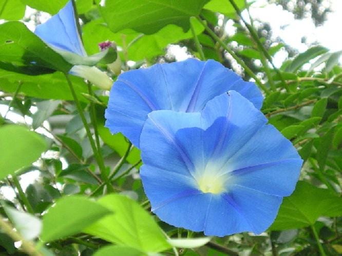 Heavenly Blue Morning Glory grace a pillar support every year in my garden. Organic Seeds