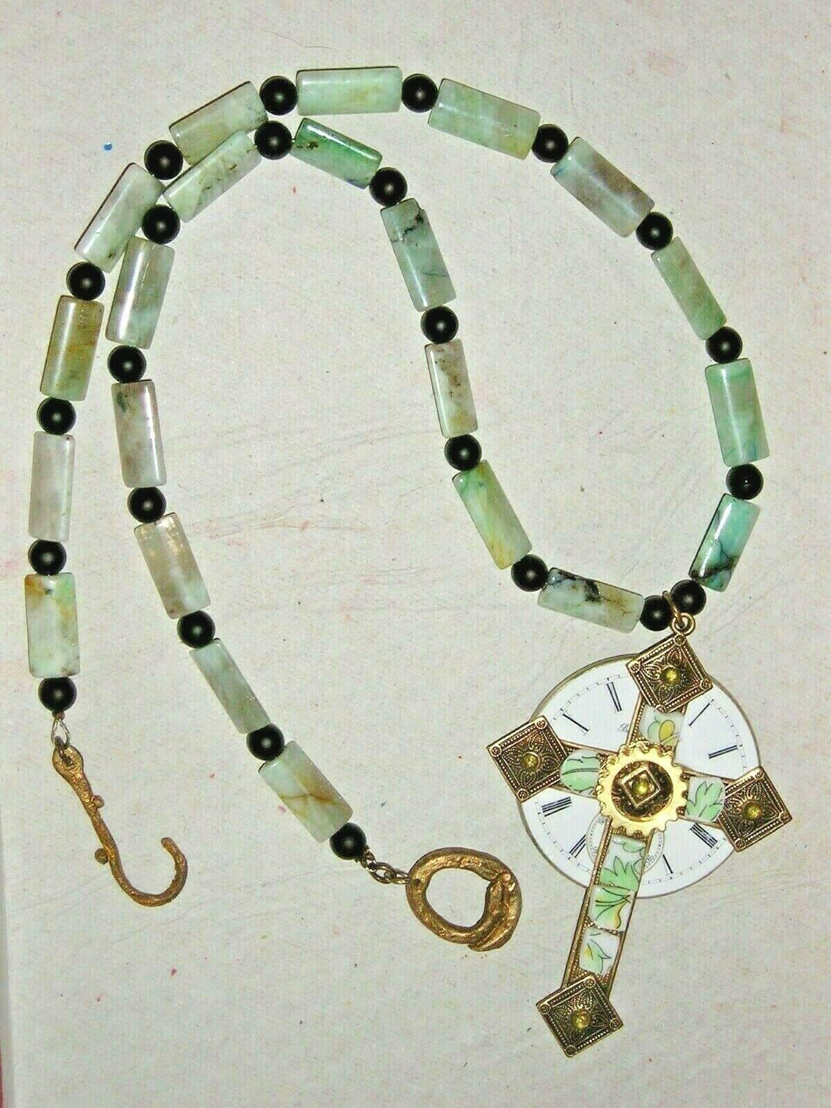 Unique Steampunk Cross With Gemstone Beaded Chain