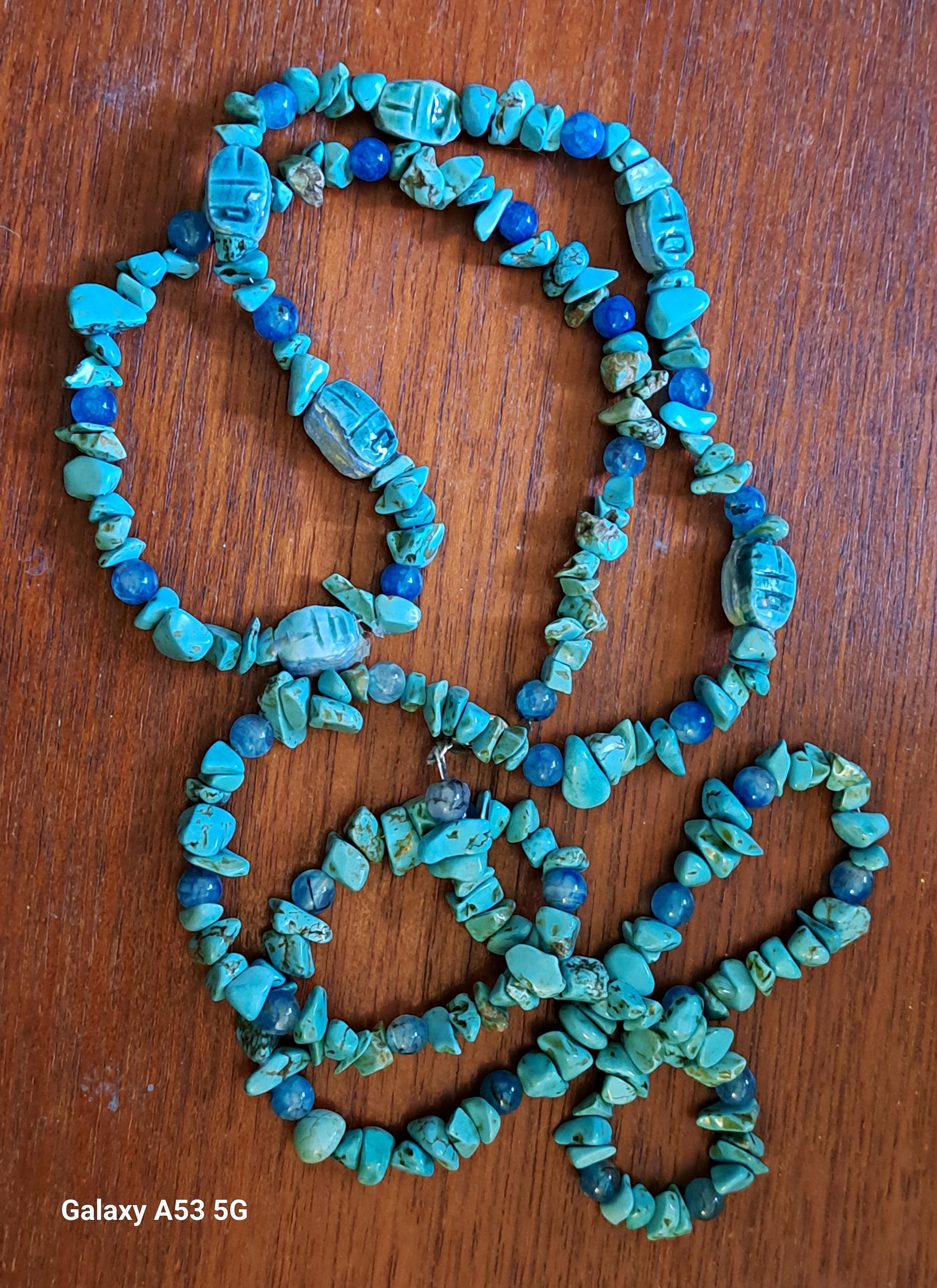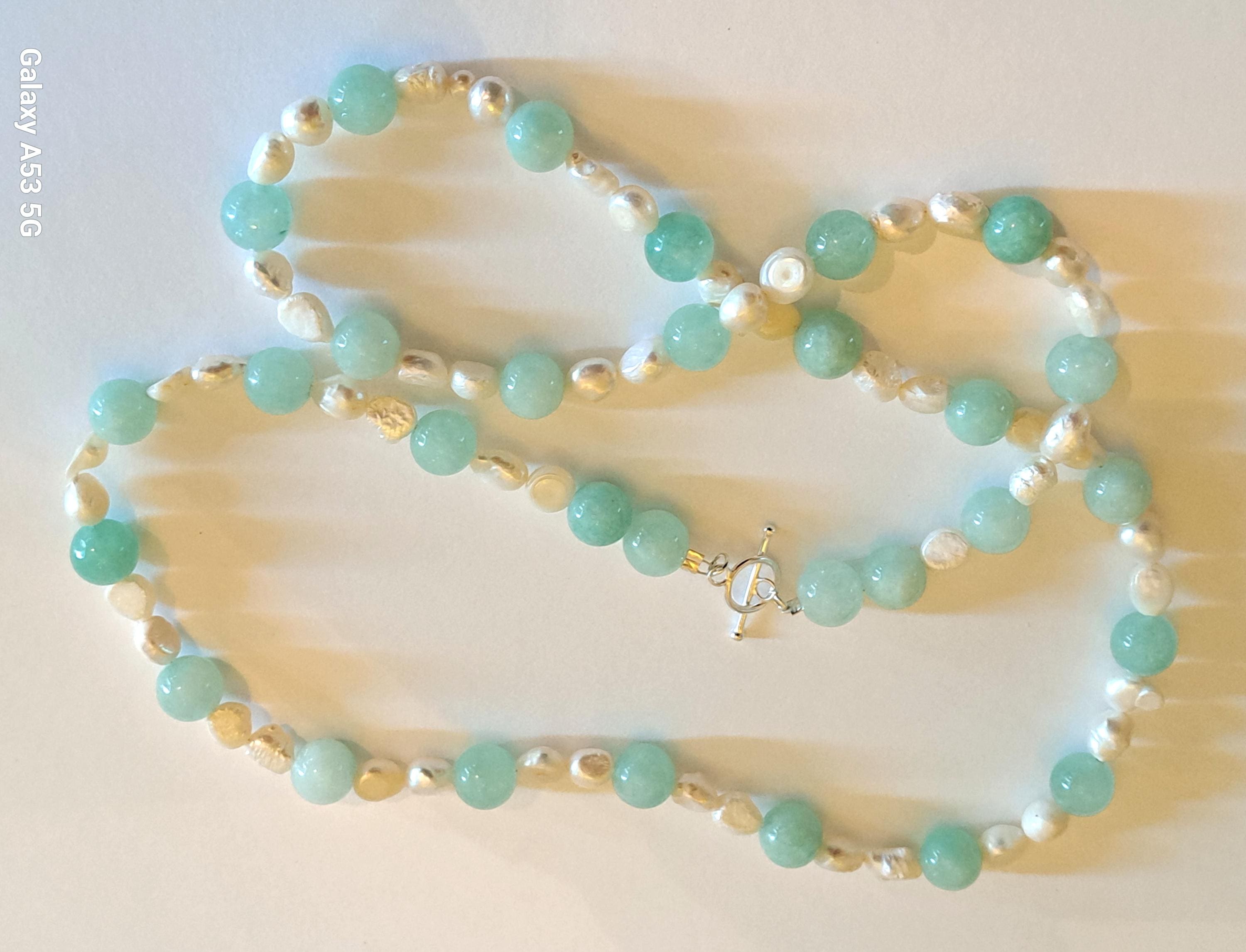 Natural Cyan Angelite, Pearl and Sterling Necklace
