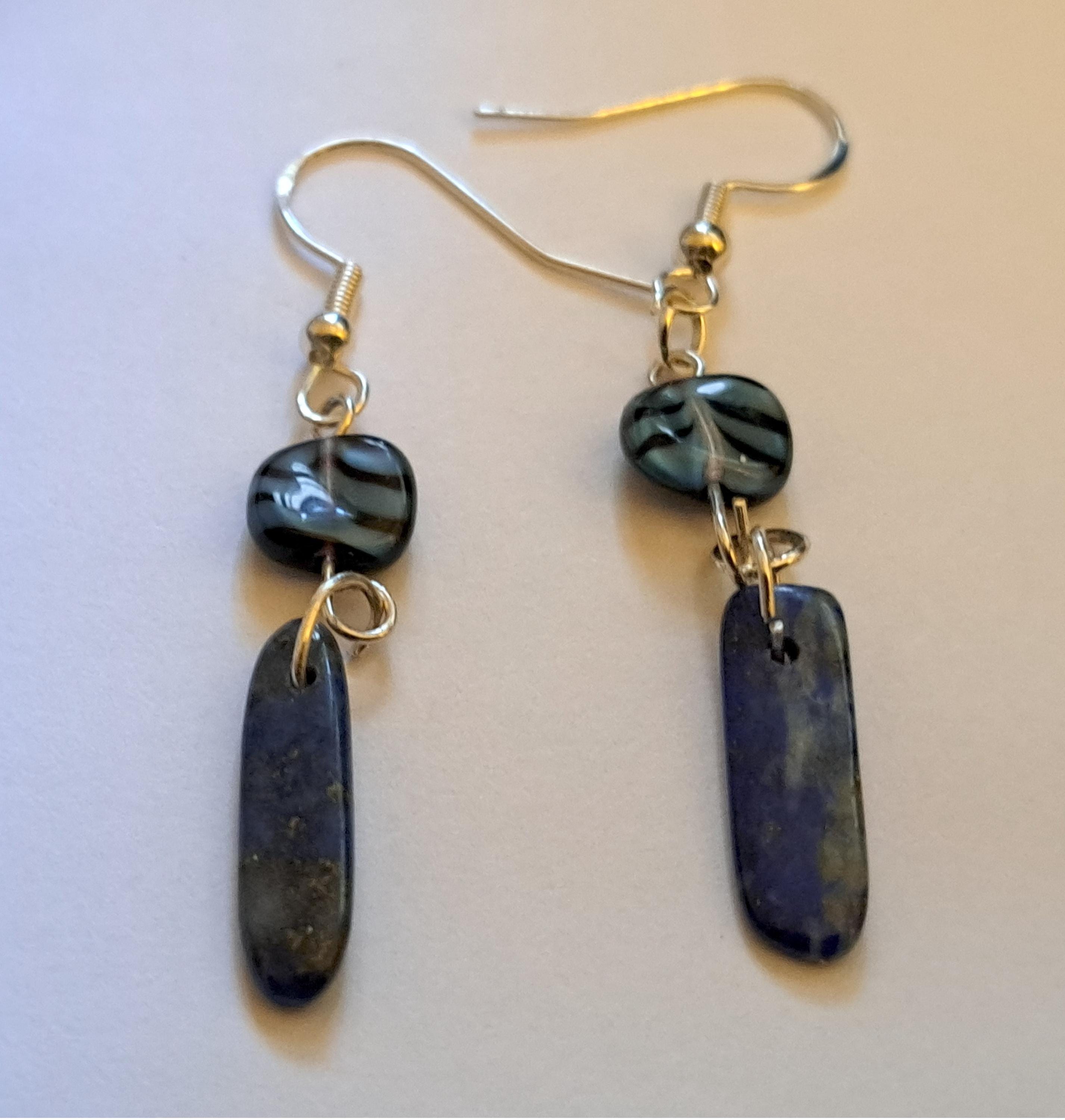 Genuine Lapis Lazuli and Montana Blue Art Glass Drop Earrings with Sterling