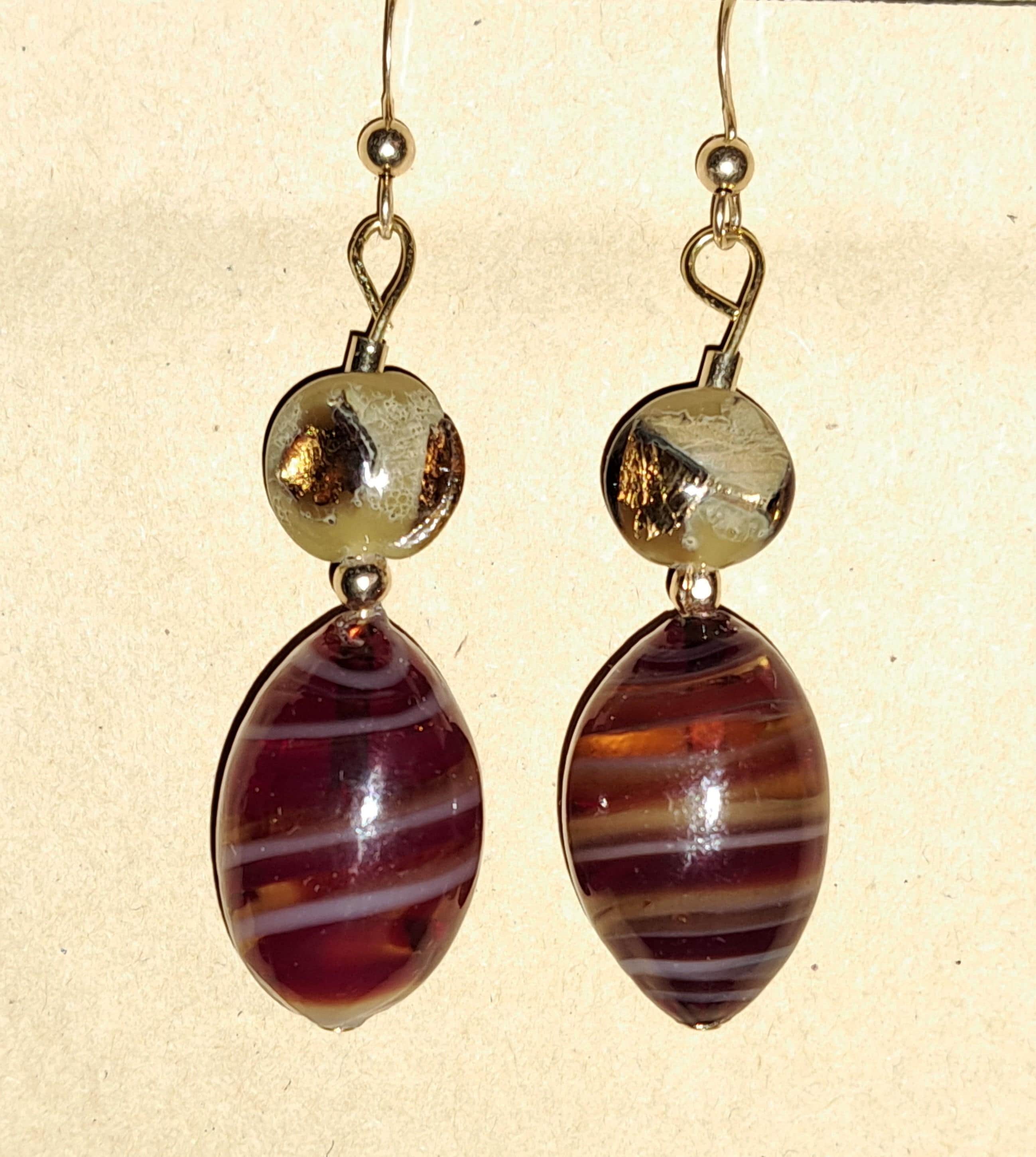 Italian Art Glass and Czech Foil Beaded Earrings 14KGF